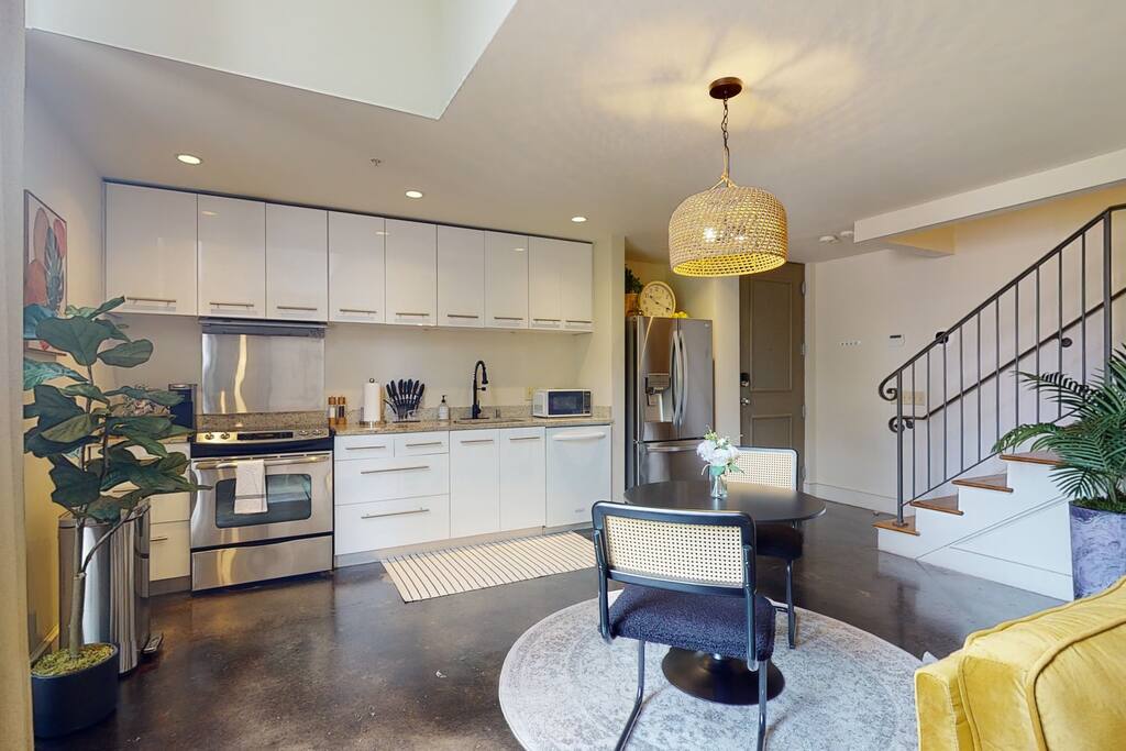 This modern two-story loft was designed by McAlpine and offers a boutique hotel feel — fresh, clean, and full of natural light from its dramatic two-story windows. Perfect whether you’re in Montgomery for business or leisure. King Bed with a brand-new mattress, encasement, and pad — ideal for allergy sufferers. Soaring Two-Story Windows that makes the space bright and airy. Private Balcony with seating — perfect for coffee or cocktails. Free Gated Parking on-site for peace of mind. In-Unit Laundry for extended stays. Cleaning tools available: broom, Swiffer, and vacuum. Full kitchen stocked with the basics (please bring specialty cooking tools if needed) Fire TV + fast WiFi Trash dumpster conveniently located by the parking gate Location: In the heart of Cloverdale — central, walkable, and surrounded by Montgomery’s best dining, shops, and culture. Close to the colleges, hospitals, downtown, and the military base. All within a 10 min drive!