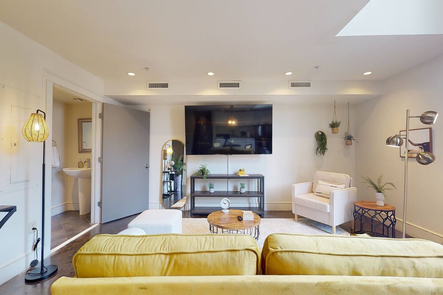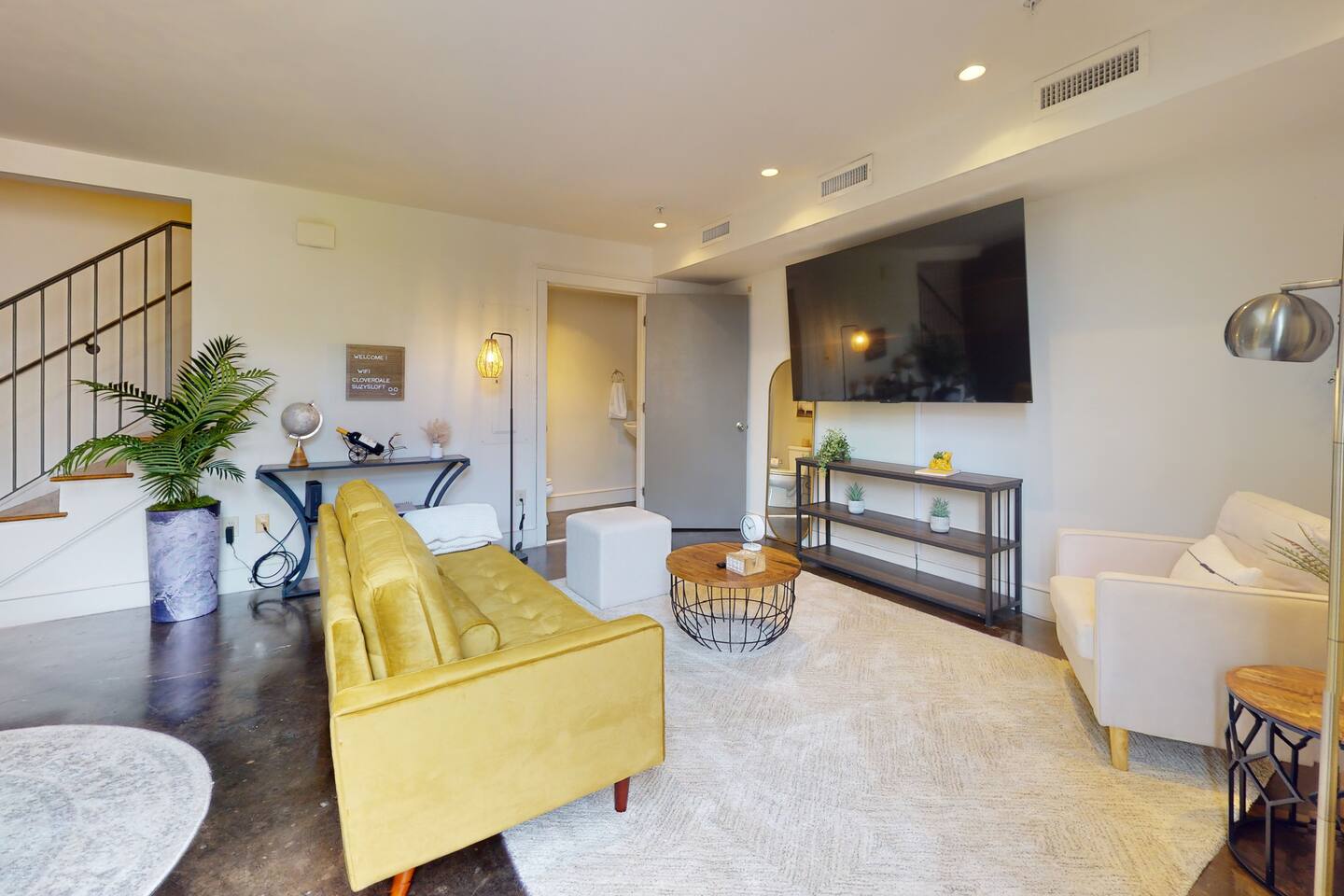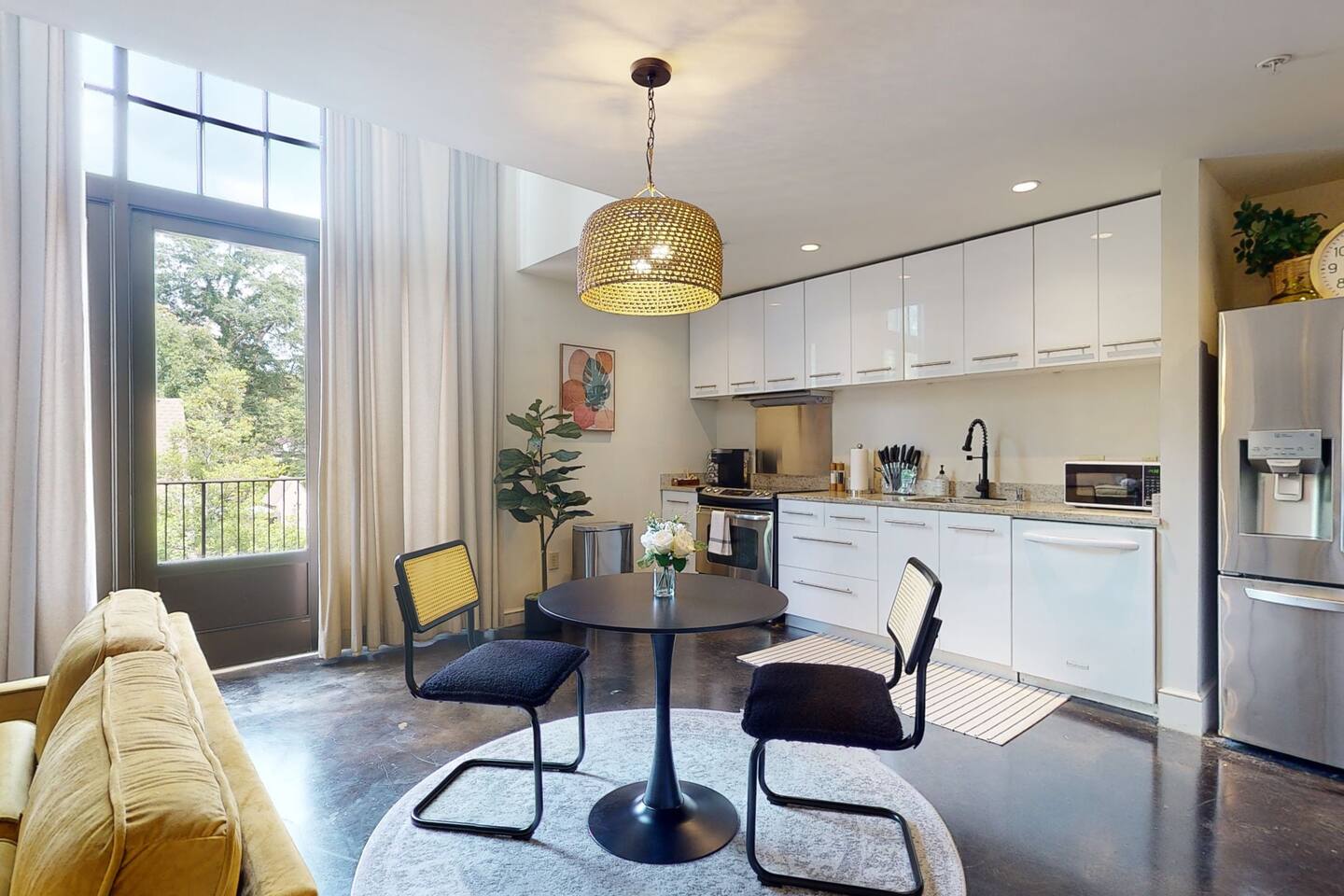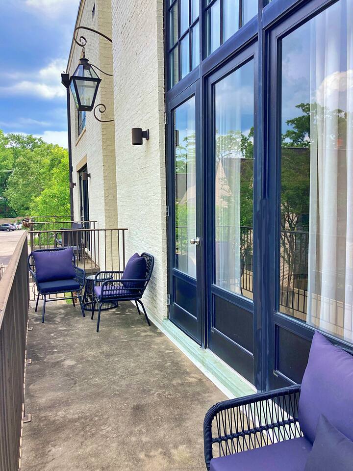 This modern two-story loft was designed by McAlpine and offers a boutique hotel feel — fresh, clean, and full of natural light from its dramatic two-story windows. Perfect whether you’re in Montgomery for business or leisure. King Bed with a brand-new mattress, encasement, and pad — ideal for allergy sufferers. Soaring Two-Story Windows that makes the space bright and airy. Private Balcony with seating — perfect for coffee or cocktails. Free Gated Parking on-site for peace of mind. In-Unit Laundry for extended stays. Cleaning tools available: broom, Swiffer, and vacuum. Full kitchen stocked with the basics (please bring specialty cooking tools if needed) Fire TV + fast WiFi Trash dumpster conveniently located by the parking gate Location: In the heart of Cloverdale — central, walkable, and surrounded by Montgomery’s best dining, shops, and culture. Close to the colleges, hospitals, downtown, and the military base. All within a 10 min drive!